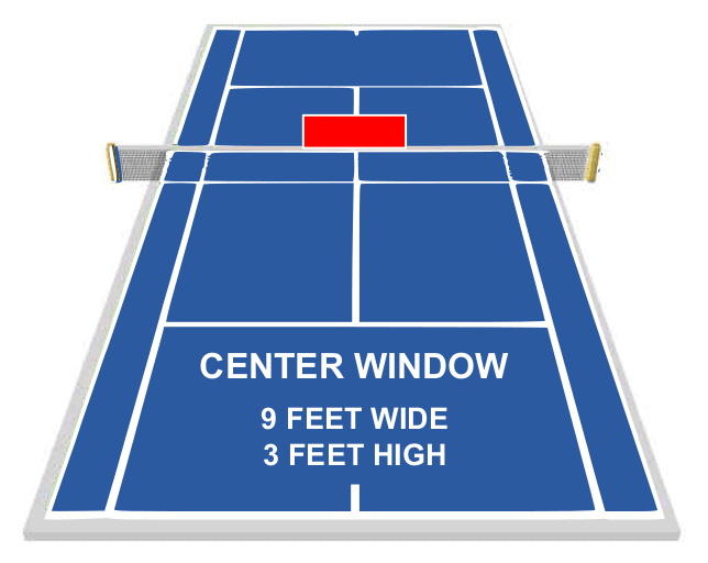 Center Window: a 9ft wide by 3ft high window centered at the net strap. The center window resembles an hourglass with the small neck being located at the center of the net.