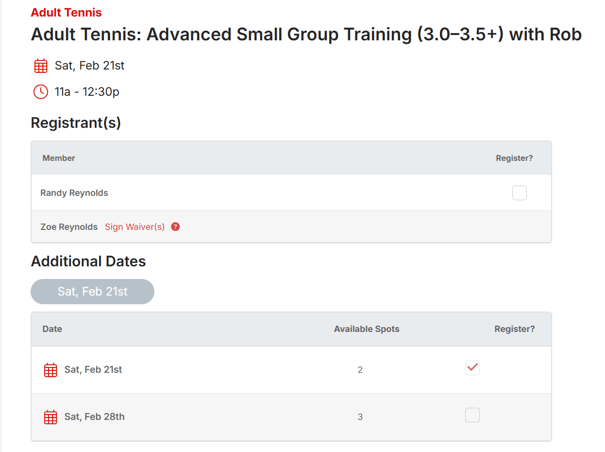 Registration is completed through CourtReserve.