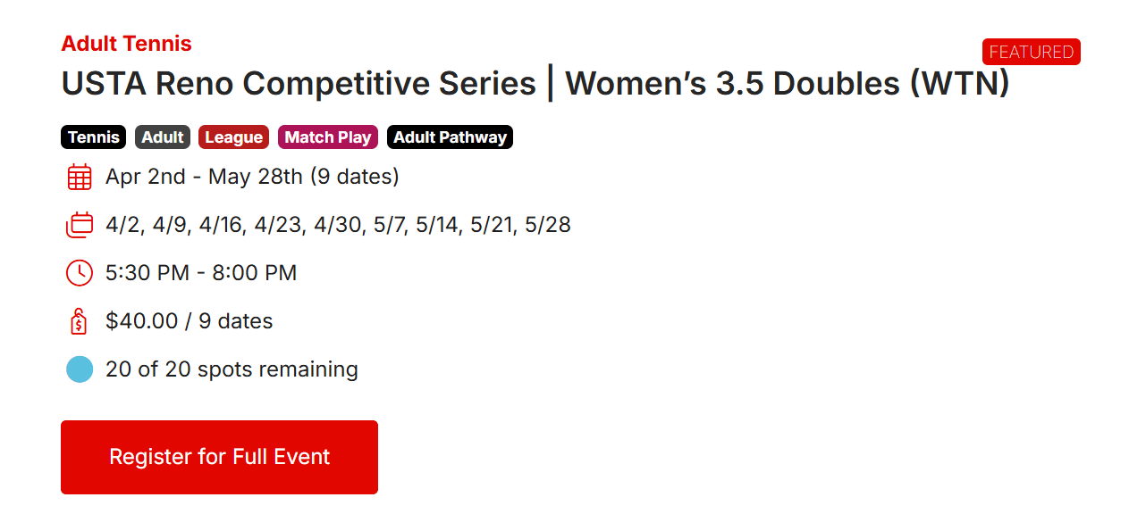 This page covers official Reno Tennis Center programs only.
